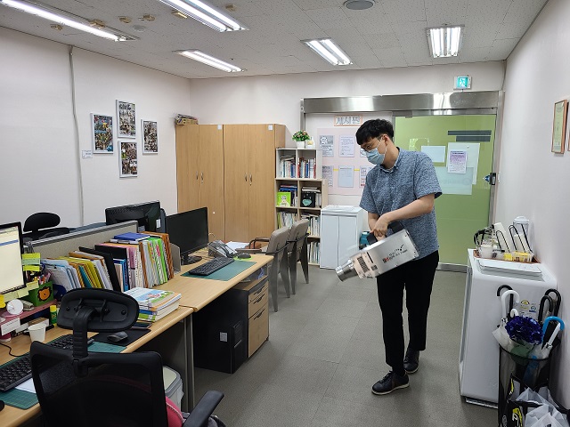코로나19 예방을 위해 매일 수시로 방역을 진행하고 있습니다. 페이지 정보 작성자 관리자 댓글 0건 조회 1,869회 작성일 20-06-09 00:21 목록 본문 페이스북 공유 트위터 공유 구글+ 공유 이전글장애인가족자조모임 "다함께 차차차: 7월 13일 현장 스케치 20.07.14 다음글구리시장애인가족지원센터는 코로나19 확산방지를 위해 자체방역을 하고 있습니다. 20.04.03