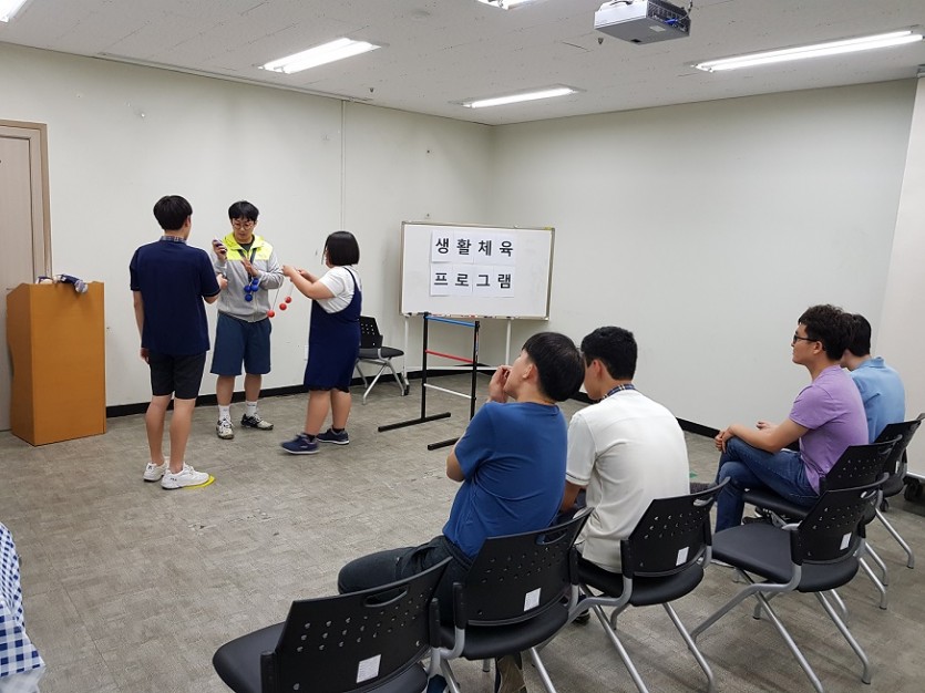 장애인 생활체육 프로그램 (7회기) 페이지 정보 작성자 관리자 댓글 0건 조회 1,744회 작성일 19-05-22 00:21 목록 본문 페이스북 공유 트위터 공유 구글+ 공유 장애인 생활체육 프로그램 7회기 진행하였습니다. 간단한 체조와 보치아볼, 레더볼을 활용하여 뉴스포츠 게임규칙 알아보기, 사고력, 집중력 기르기 진행하였습니다~^^ 이전글무지개동아리 활동 19.05.24 다음글장애인 생활체육 프로그램 (6회기) 19.05.16
