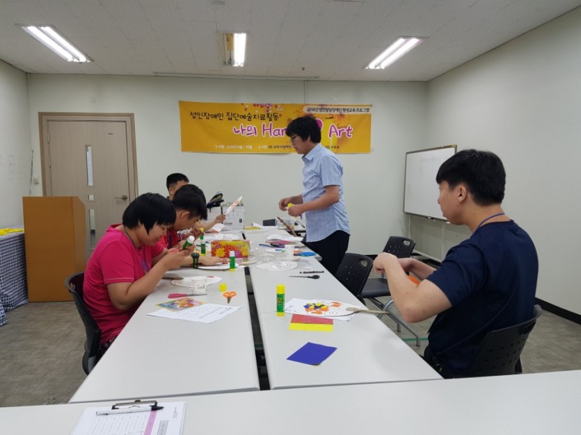 성인장애인 평생교육 우수프로그램 나의hart♥art (금 7회기) 페이지 정보 작성자 관리자 댓글 0건 조회 1,716회 작성일 18-06-08 00:21 목록 본문 페이스북 공유 트위터 공유 구글+ 공유 이전글찾아가는 생활체육 프로그램 성인발달장애인 스트레칭교실(월) 18.06.11 다음글찾아가는 생활체육 프로그램 성인발달장애인 스트레칭교실(월) 18.06.04