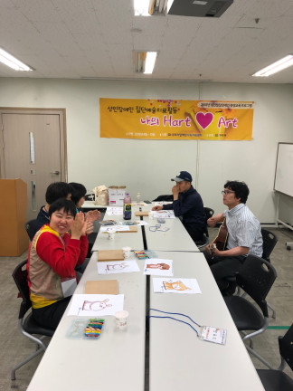성인장애인 평생교육 우수프로그램 나의hart♥art (금 3회기) 페이지 정보 작성자 김아롬 댓글 0건 조회 1,727회 작성일 18-05-11 00:20 목록 본문 페이스북 공유 트위터 공유 구글+ 공유 이전글찾아가는 생활체육 프로그램 성인발달장애인 스트레칭교실(월) 18.05.14 다음글동료상담사 슈퍼비전 진행 (목) 18.05.10