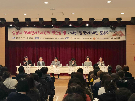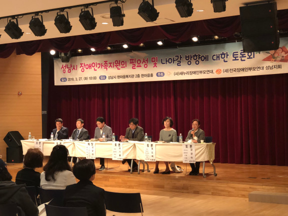성남시 장애인가족 지원의 필요성과 나아갈 방향에 관한 토론회 참석 (토론자 정경숙 센터장 외) 페이지 정보 작성자 김아롬 댓글 0건 조회 1,570회 작성일 18-03-30 00:20 목록 본문 페이스북 공유 트위터 공유 구글+ 공유 이전글성인평생학습 우수동아리 무지개 보드게임활동 (1회기) 18.04.03 다음글2018년도 제1차 운영위원회 18.03.05