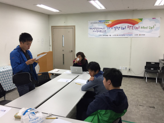 자기결정 UP! 행복 UP! Mind UP! 7주차(월) 모임 페이지 정보 작성자 김아롬 댓글 0건 조회 1,554회 작성일 17-10-17 00:20 목록 본문 페이스북 공유 트위터 공유 구글+ 공유 이전글동료상담사 심화과정 6주차(수) 17.10.18 다음글부모교실 토탈공예 1주차 (월) : 천연비누 만들기 17.10.17