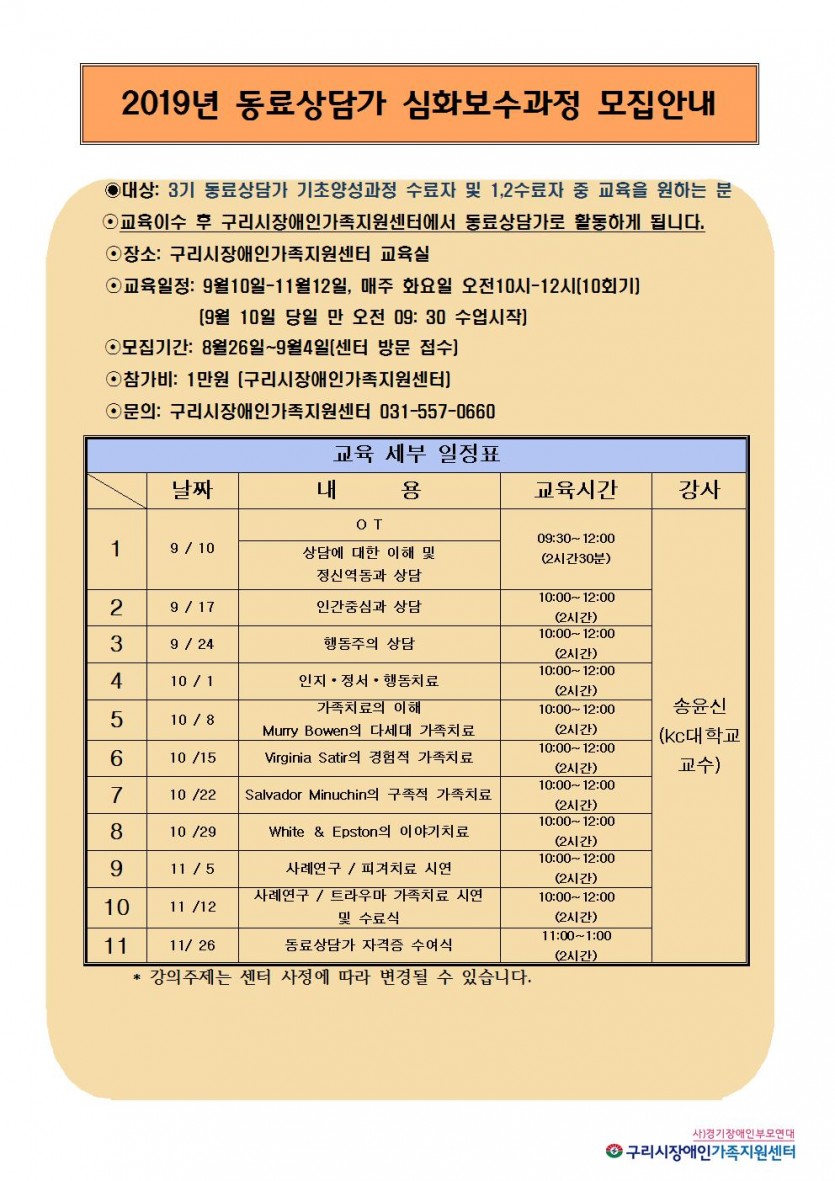 2019년 동료상담 양성과정 (모집) 페이지 정보 작성자 관리자 댓글 0건 조회 7,566회 작성일 19-08-19 00:18 목록 본문 페이스북 공유 트위터 공유 구글+ 공유 이전글하반기 사회복지 현장 실습생 모집 19.08.20 다음글육아휴직 대체인력 모집(마감) 19.08.28 댓글 0 댓글목록 등록된 댓글이 없습니다.
