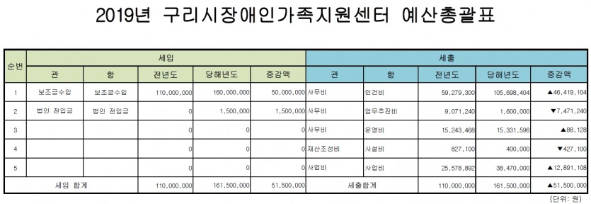 2019년 구리시장애인가족지원센터 예산총괄표 페이지 정보 작성자 관리자 댓글 0건 조회 7,928회 작성일 19-02-07 00:18 목록 본문 페이스북 공유 트위터 공유 구글+ 공유 이전글구리시장애인가족지원센터 2월 일정표 19.02.07 다음글설연휴 센터휴무 공지 19.02.01 댓글 0 댓글목록 등록된 댓글이 없습니다.