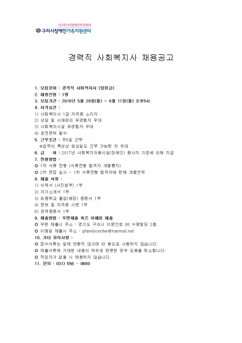 경력직 사회복지사 채용 페이지 정보 작성자 관리자 댓글 0건 조회 7,914회 작성일 18-05-30 00:18 목록 본문 페이스북 공유 트위터 공유 구글+ 공유 이전글6월 배리어프리 영화관람 안내 18.06.04 다음글사회복지사 채용공고 18.05.11 댓글 0 댓글목록 등록된 댓글이 없습니다.
