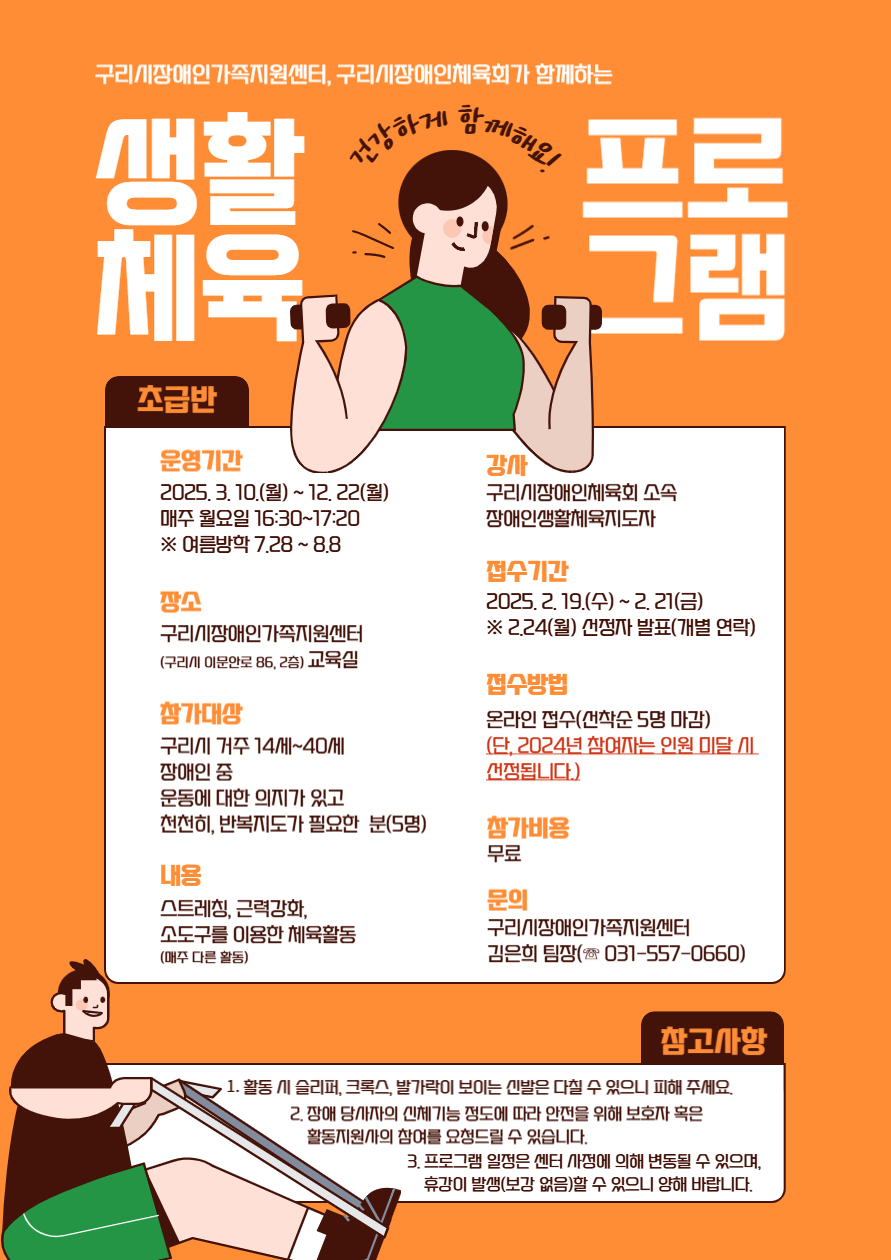 2025년 생활체육교실 "중급" 추가(1명), 예비 참여자 모집