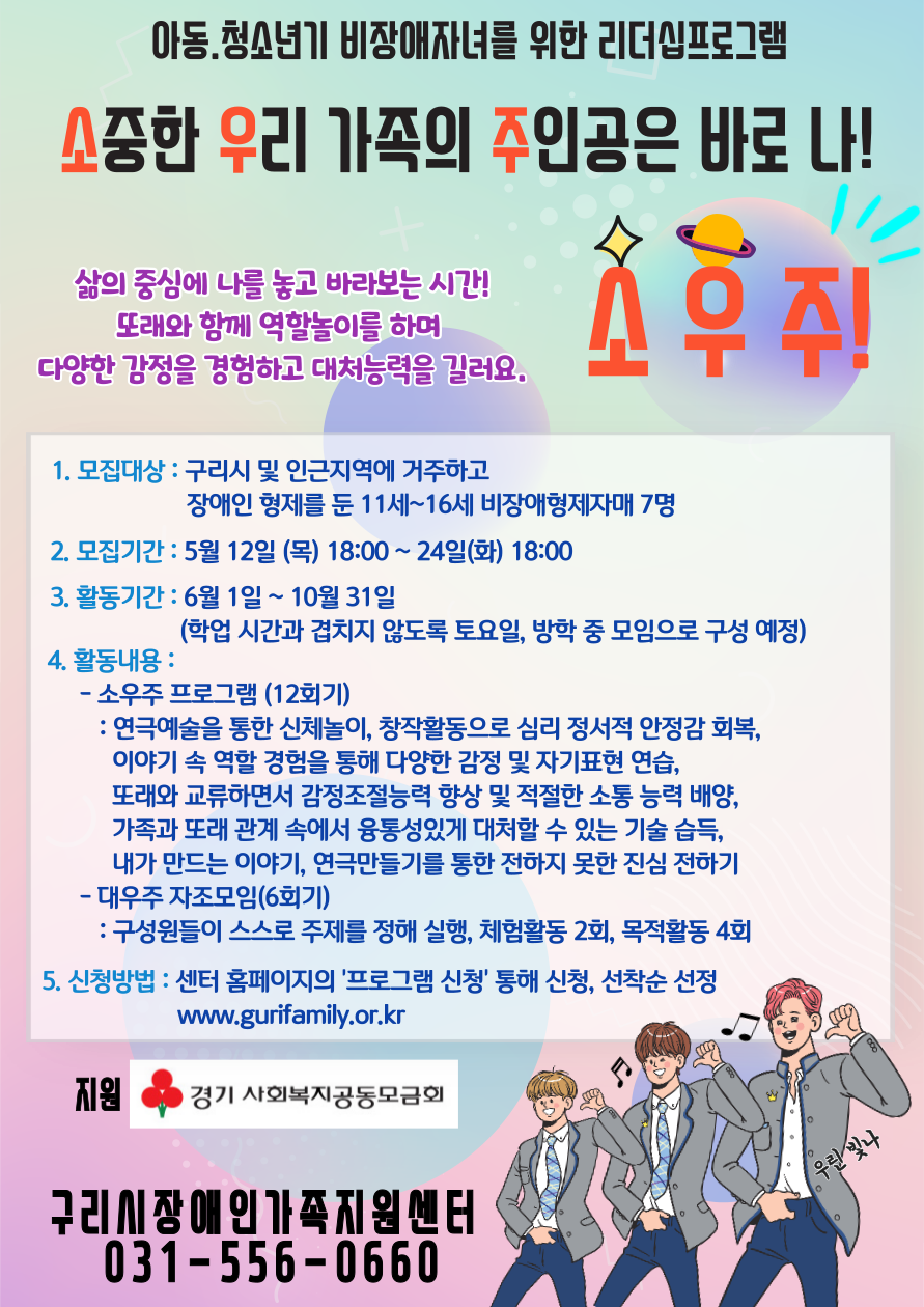 아동.청소년기 비장애자녀를 위한 리더십프로그램 "소우주"