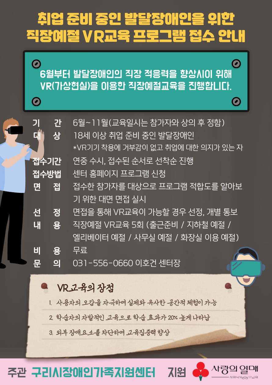 취업 준비 중인 발달장애인을 위한 직장예절 VR교육 프로그램 접수 안내